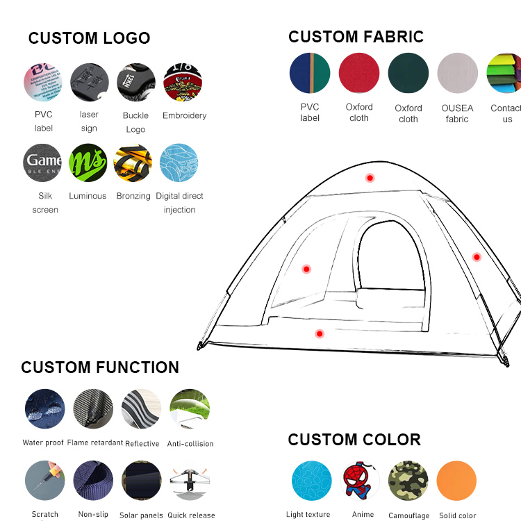 Автоматичний пляжний водонепроникний намет для кемпінгу на відкритому повітрі. Toile De Tente пропонує універсальну інтеграцію з різними продуктами для відпочинку на природі. Цей автоматичний пляжний намет має чудовий водонепроникний захист, що робить його ідеальним для безпечного кемпінгу та сімейних пригод. Його гнучкий дизайн забезпечує комфорт і надійність у різноманітних умовах.