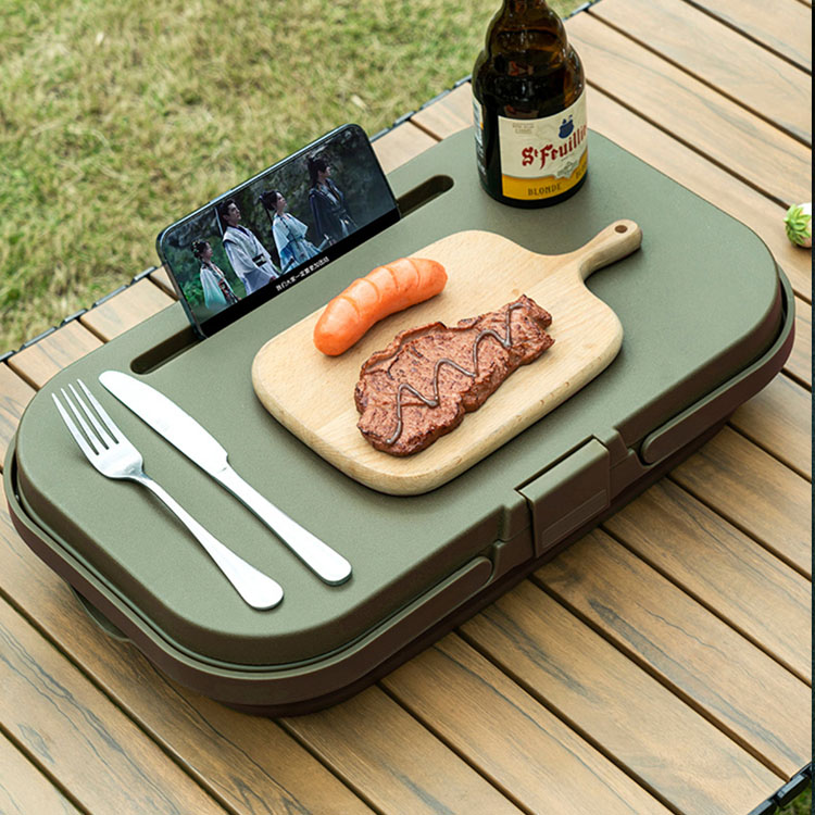Цей інноваційний кошик за лічені секунди перетворюється з глибокого контейнера для зберігання на плоску стійку поверхню столу, забезпечуючи як організоване зберігання, так і зручну платформу для сервірування/їди для активного відпочинку.