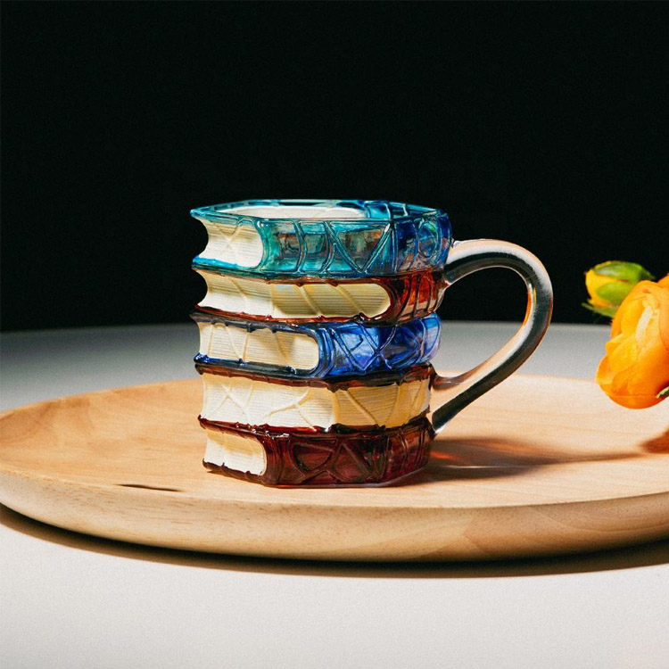 Ця креативна чашка для кави має приголомшливий 3D-дизайн книг, що складаються в купу, що робить її ідеальним поєднанням артистизму та функціональності. Кожна деталь, від текстурованих книжкових корінців до реалістичних сторінок, ретельно розроблена, щоб порадувати книголюбів і колекціонерів.