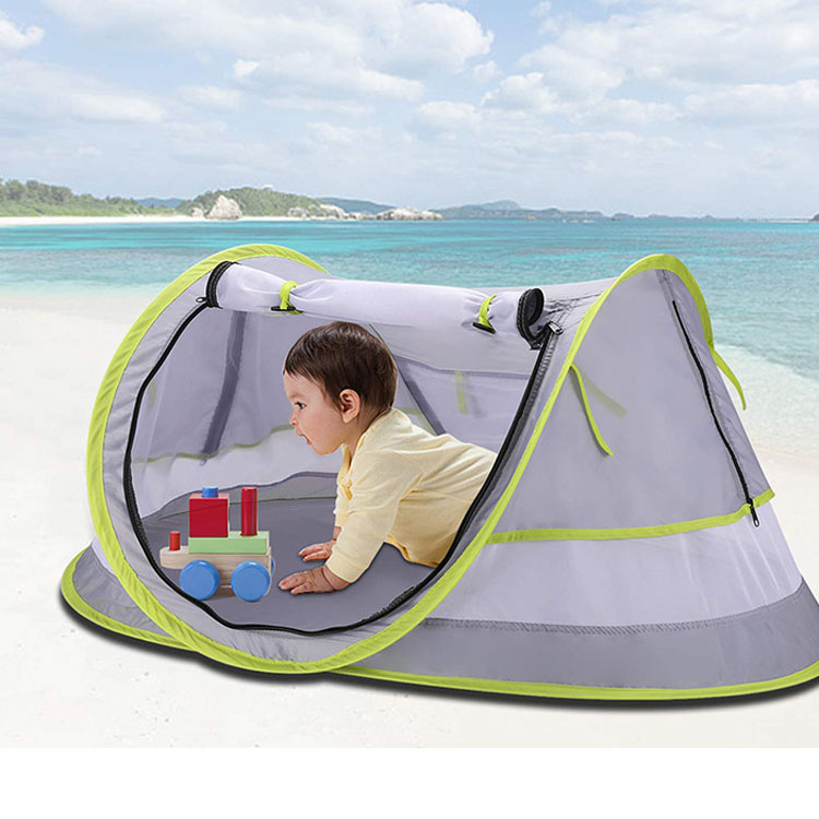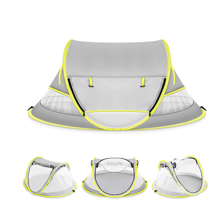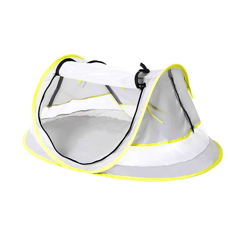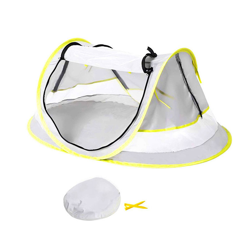 Легкий одношаровий водонепроникний поліестеровий розсувний намет. Ваш ідеальний літній пляжний притулок для сімейних пригод. Цей легкий розсувний намет має одношарову водонепроникну поліестерову конструкцію, у якій зручно розміститися чотири людини. Ідеально підходить для пляжних прогулянок і сезонного кемпінгу, він поєднує швидке налаштування з надійним захистом від погоди.