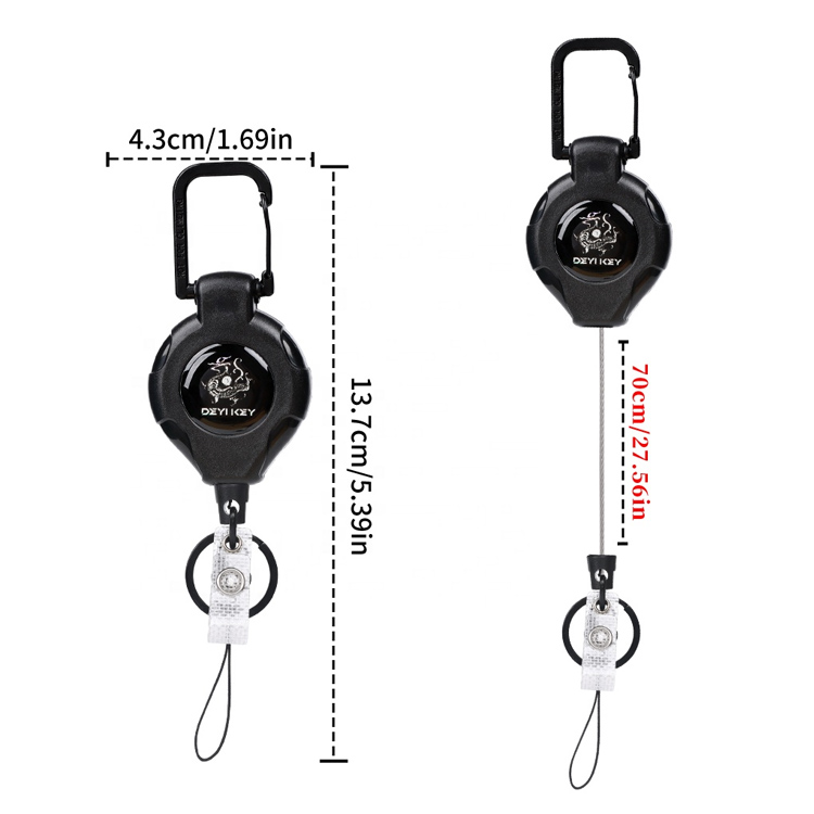Має міцну нейлонову мотузку довжиною 80 см із плавним висувним механізмом, який забезпечує зручне висування, запобігаючи заплутуванню, зберігаючи ваші ключі в безпеці та доступні під час активного відпочинку.