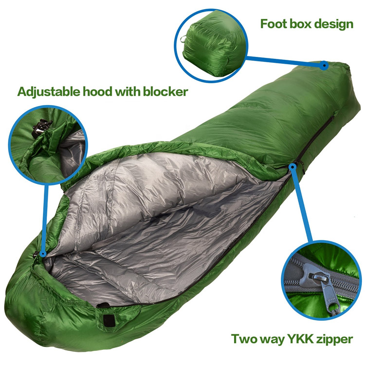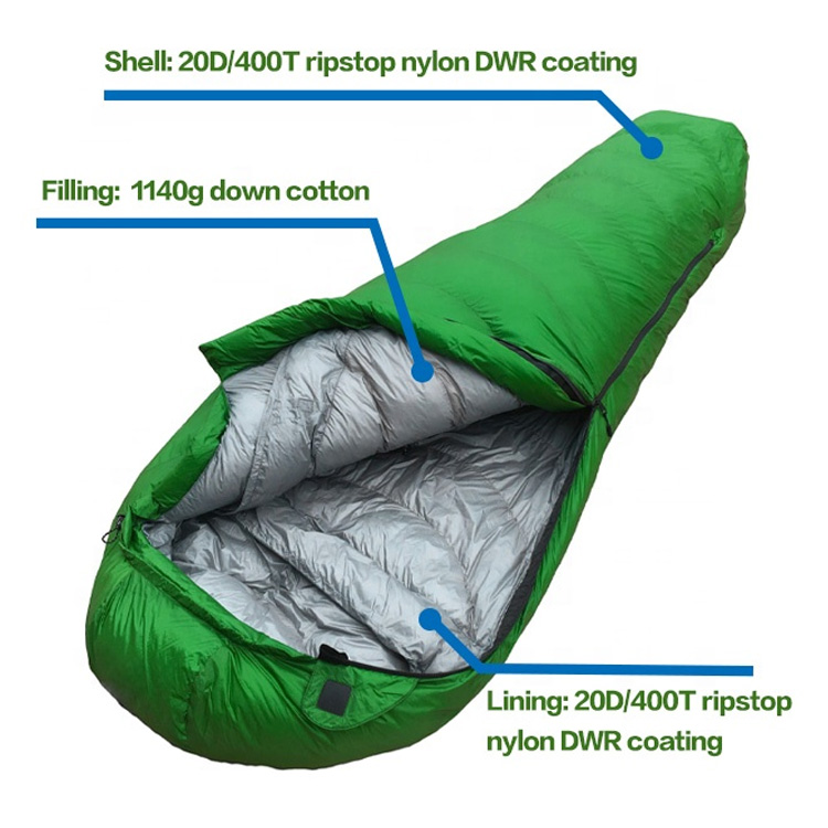 Надзвичайно легкий портативний спальний мішок для мумії в холодну погоду. Ваше найкраще рішення для сну в холодну погоду для пригод у пустелі. Цей надлегкий спальний мішок Mummy має утеплювач із качиного гусячого пуху преміум-класу для максимального зігрівання. Розроблений для серйозного кемпінгу, він поєднує виняткову термічну ефективність із мінімальною вагою рюкзака.