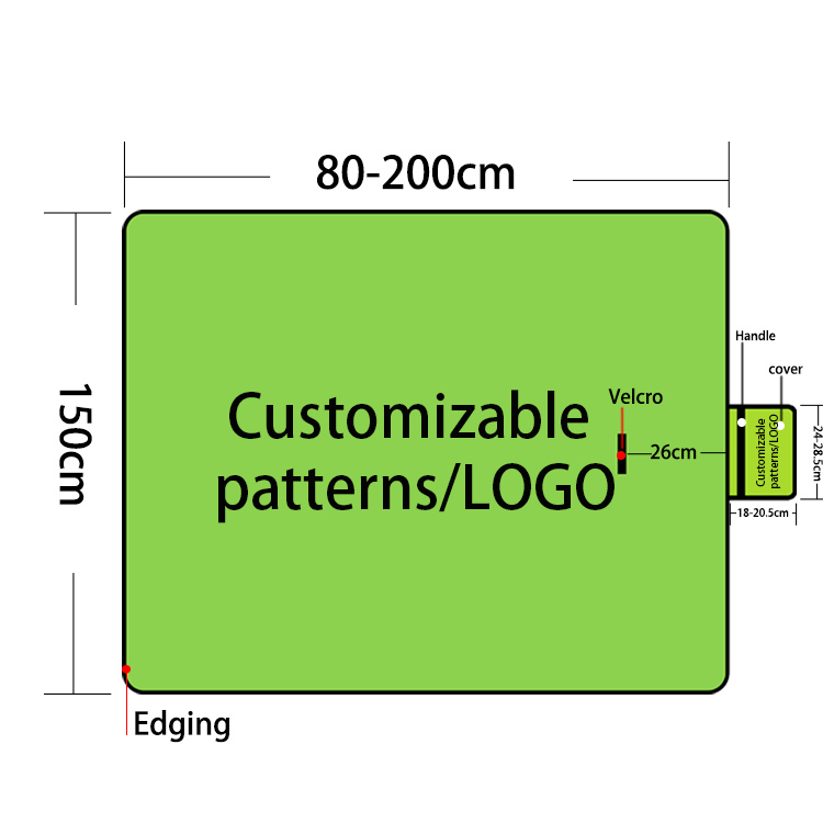 Ця ковдра, виготовлена з поліефірної тафти високої щільності 210T за допомогою технології ультразвукового зварювання, забезпечує виняткову стійкість до розриву та довговічність, зберігаючи м’яку та зручну поверхню для тривалого використання на вулиці.