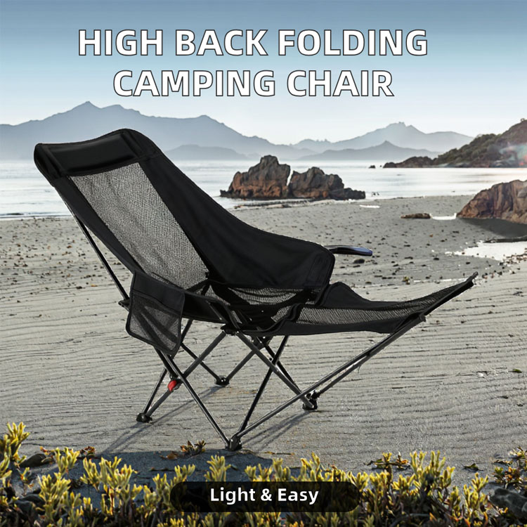Портативний розкладний стілець із високою спинкою та 3 регульованими ніжками. Ваше найкраще портативне рішення для відпочинку на природі. Це розкладне крісло Oxford з високою спинкою має три регульовані положення та висувну підставку для ніг. Ідеально підходить для кемпінгу, риболовлі, походів і прогулянок у парку, він забезпечує неперевершений комфорт будь-де.