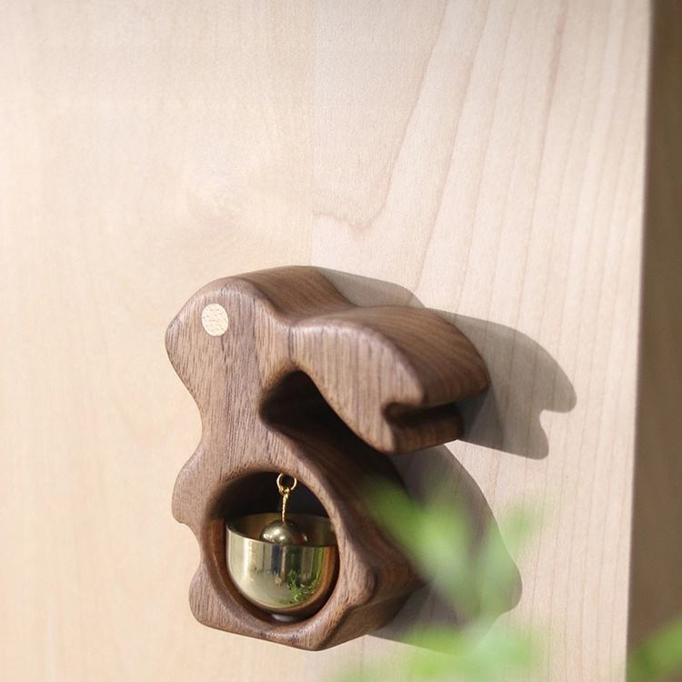 Магніти на холодильник з кролика з масиву дерева Ручна робота з латуні Дверний дзвінок з латуні. 2025 новий дизайн магнітів на холодильник із кролика з натурального масиву дерева оснащено латунним дзвіночком ручної роботи з чітким і чистим звуком. Ідеально підходить як унікальний акцент у домашньому декорі або святковий подарунок на весілля, Дівалі, Рамадан та інші особливі події.