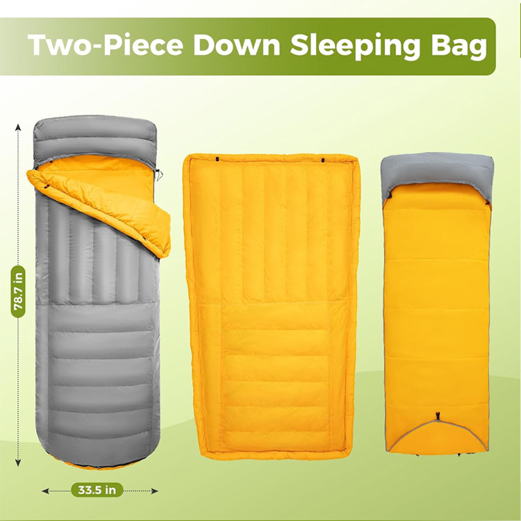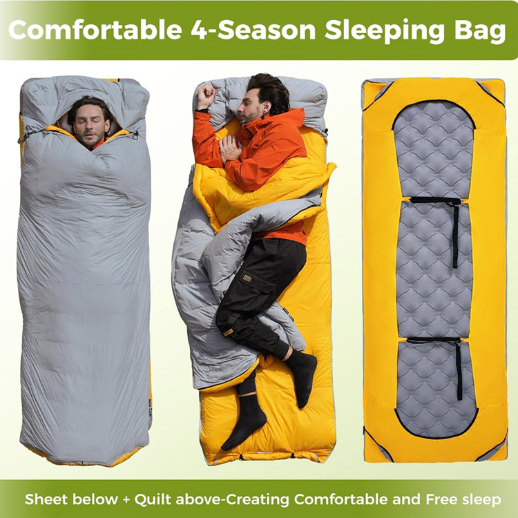 Легко перетворюється з традиційної сумки для мумії на універсальну верхню ковдру за допомогою роздільних блискавок на всю довжину, враховуючи різні переваги сну та забезпечуючи гнучке покриття під час змінних температур.