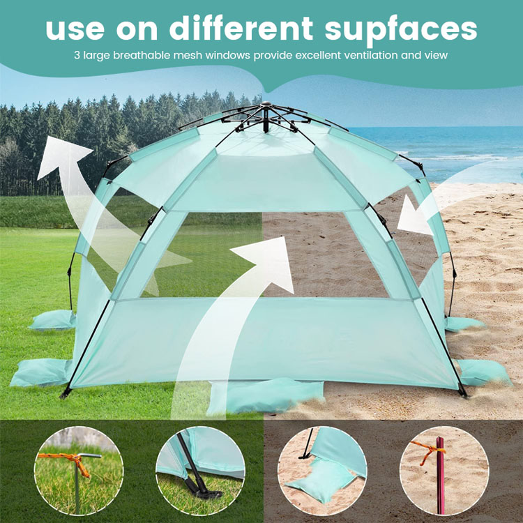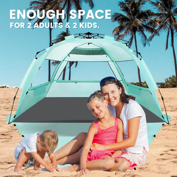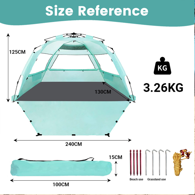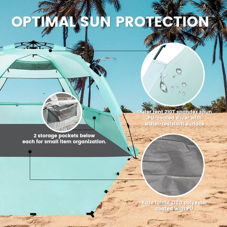 Спеціальна срібляста тканина блокує 98% шкідливих ультрафіолетових променів, зберігаючи чудовий потік повітря, створюючи прохолодну затінену зону для тривалого перебування на пляжі.